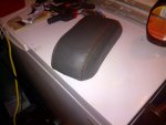 As I said before test fit the piece and start stretching the leather into the shape of the armrest. You leather does stretch, no a lot, but it should be stretched avoid it going baggy in the future. I started by adhering the from edge and the back edge of the padding to the armrest. Get it centered and only apply a little glue at each end(in this case less is more). This step will help tremendously to avoid fighting two moving objects (leather and padding)