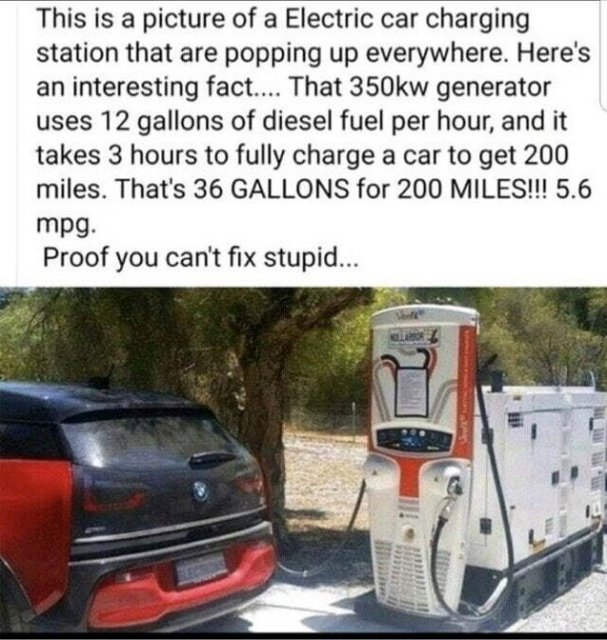 The experiment found that when charged this way, a BMW i3 was the most fuel-efficient of the electric cars, consuming 4.39 liters of fuel for every 100 kilometers of range added, equivalent to about 54 mpg. One Tesla model consumed around 7 liters of diesel fuel per 100 km of range, equivalent to about 34 mpg.